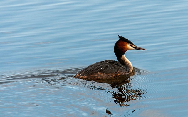Sédentaire en partie, migrateur pour certains, le Grèbe huppé est présent sur les grands plans d’eau et cours d’eau charentais dès la fin de l’hiver. La reproduction a lieu de mars à juillet : le nid flottant, dissimulé dans les roselières ou la végétation rivulaire, accueille plusieurs jeunes transportés ensuite sur le dos de leurs parents. Les observations s’étalent jusqu’à l’automne, période où de nombreux individus migrateurs viennent renforcer les effectifs locaux.