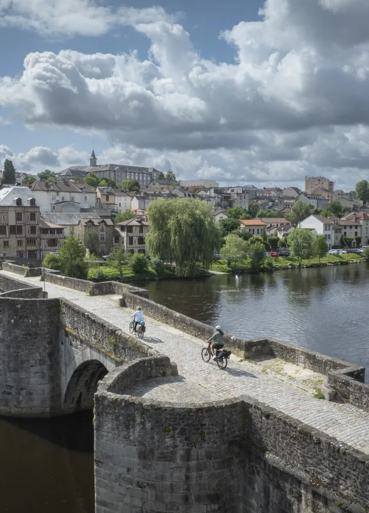 A savoir : La gare de Saint-Léonard-de-Noblat est à 5 minutes en vélo du centre du village. Vous pouvez aussi faire un petit détour par le charmant pont médiéval de Noblat sur la Vienne. Attention, ça grimpe aussi fort que la descente depuis la gare.